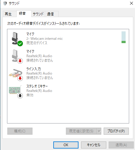 windows10「ボイスレコーダー」で音声を録音するには、まず「ステレオミキサー」を有効にする必要があります。